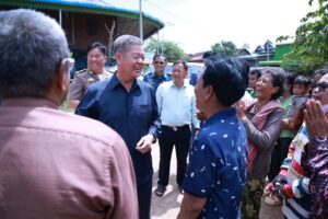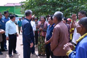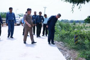 ខេត្តកណ្ដាល៖ នាព្រឹកថ្ងៃទី២៤ ខែកក្កដា ឆ្នាំ២០២៥បន្ទាប់ពីបញ្ចប់ ពិធីបិទផ្សាយជាសាធារណៈនូវឯកសារនៃការវិនិច្ឆ័យ ចំនួន ០៥ភូមិ ក្នុងឃុំព្រែកឬស្សី ស្រុកល្វាឯម ខេត្តកណ្ដាល ឯកឧត្តម គួច ចំរើន អភិបាល នៃគណៈអភិបាលខេត្តកណ្ដាល អញ្ជើញពិនិត្យផ្លូវបេតុងអាមេប្រវែង ១៨០០ម៉ែត្រ ទទឹង៦ម៉ែត្រ កម្រាស់០,១៥ម៉ែត្រ និងសំណេះសំណាលជាមួយប្រជាពលរដ្ឋ ស្ថិតនៅភូមិព្រែកប្រា ឃុំព្រែកឫស្សី ស្រុកល្វាឯម។