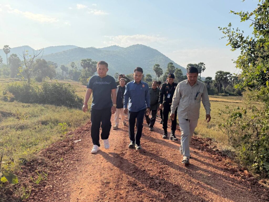 ខេត្តកំពត៖ នៅព្រឹកថ្ងៃទី១២ ខែមករា ឆ្នាំ២០២៦ ឯកឧត្តមបណ្ឌិត ហ៊ុន សុខា ទីប្រឹក្សាសម្តេចអគ្គមហាសេនាបតីតេជោ ហ៊ុន សែន ប្រធានគណបក្សប្រជាជនកម្ពុជា និងជាប្រធានក្រុមការងារចលនាកសាងសមាជិកគណបក្សនៅមូលដ្ឋានខេត្តកំពត ដឹកនាំក្រុមការងារចុះពិនិត្យការស្ថាបនាផ្លូវក្រាលគ្រួសក្រហម ១ខ្សែ ប្រវែង១៣០០ម៉ែត្រ ដែលជាអំណោយដ៏ថ្លៃថ្លារបស់សម្ដេចតេជោ ហ៊ុន សែន និងសម្ដេចកិត្តិព្រឹទ្ធបណ្ឌិត ប៊ុន រ៉ានី ហ៊ុនសែន នៅភូមិព្រៃឈើទាល ដែលឆ្លងកាត់ នៅភូមិព្រៃឈើទាល និងភូមិអង្គរំដួល ឃុំអង្គរជ័យ ស្រុកអង្គរជ័យ ខេត្តកំពត។